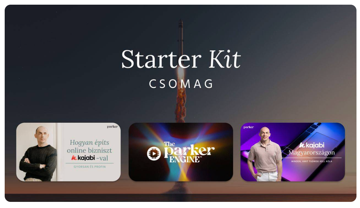 A Kajabi-val egyszerű sablonokból, gyorsan tudsz szépet építeni. Az egész Parker Media a Kajabi rendszerén fut.