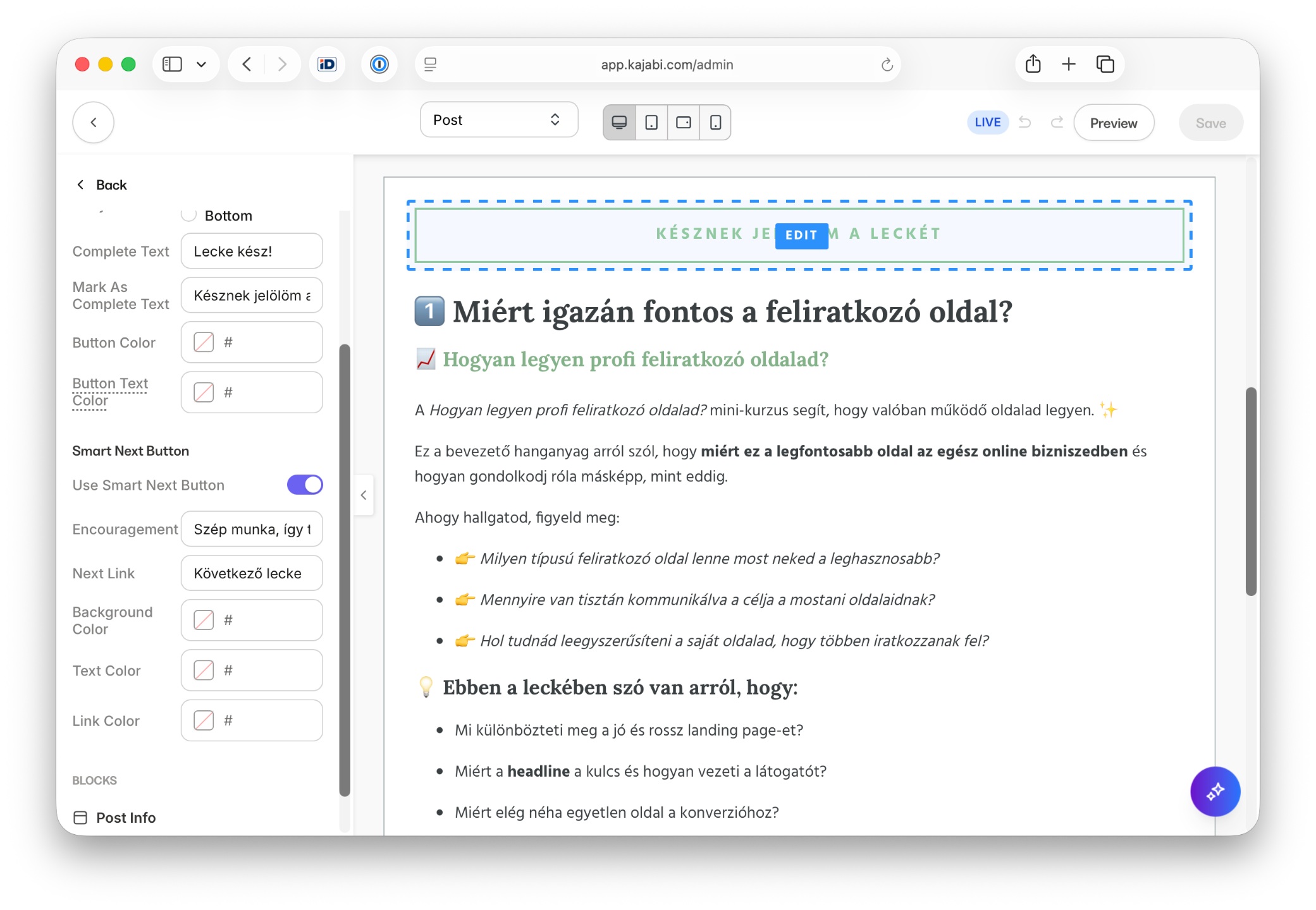 Hivatalos Kajabi partnerként már sok Kajabi rendszert összeraktunk, és ezek építése közben folyamatosan teszteltük, finomítottuk, majd letisztáztuk azokat a beállításokat, amelyek a legjobban működnek.