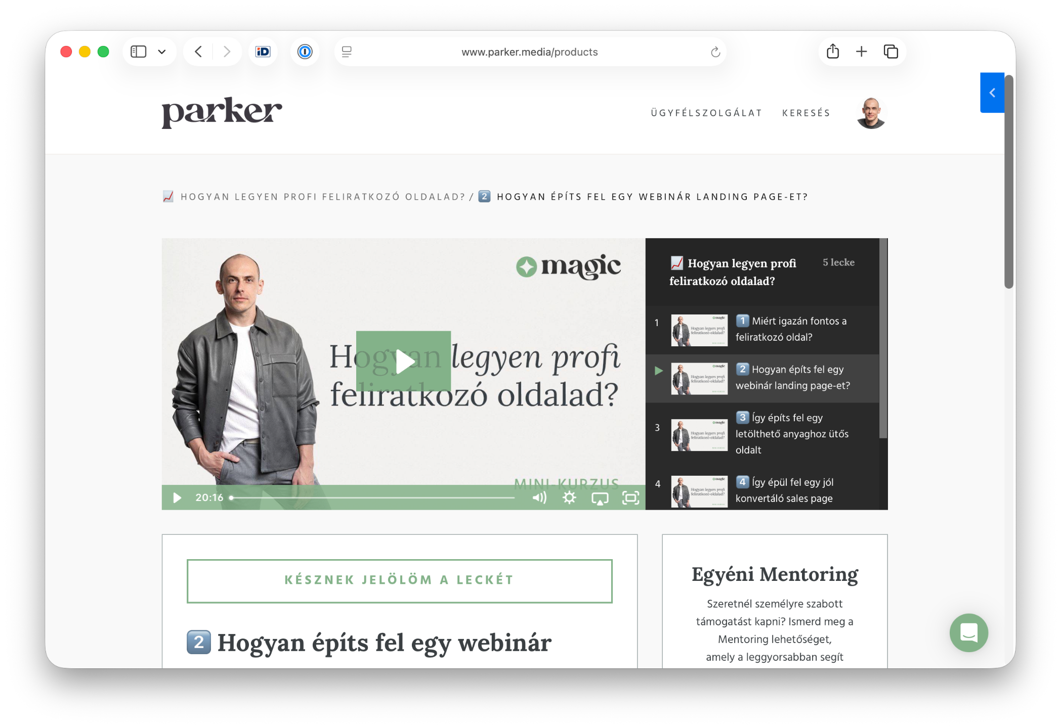 - Mini-kurzus arról, hogyan építs profin feliratkozó oldalt, sales page-et és struktúrált ajánlatot